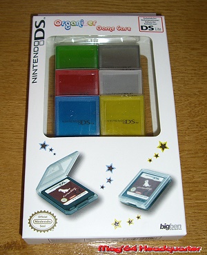 Ein weiteres, von höchster Stelle lizenziertes Nintendo-Produkt findet aus dem Hause „Bigben“ den Weg in die örtlichen Händlerregale. Mit dem „Organizer Game Case“ spricht der Bergheimer Premium-Zubehörhersteller all diejenigen Spieler an, die ihre Nintendo DS-Spielkarten gerne in sortierter Weise und geschützt vor äußeren Einflüssen aufbewahren würden. Im Sechserpack kommen die farblich verschiedenen Game Cases daher – grün, grau, rot, transparent, dunkelblau und gelb.