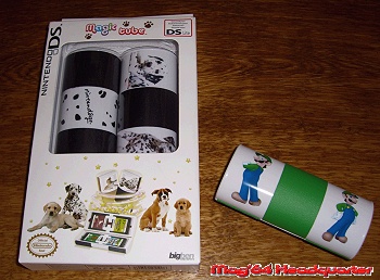 „Bigben“ ist immer für eine Überraschung gut, die „Magic Tube“ macht da keine Ausnahme! Darunter hat man sich im Grunde eine genial verpackte Design-Lösung einer Spiele-Aufbewahrungsbox vorzustellen, die – als offizieller Nintendo-Zubehörhersteller hat man nun einmal das Vorrecht – in verschiedenen Lizenz-Outfits daher kommt und die Geschmäcker vieler Spieler treffen dürfte. Zur Verdeutlichung dürfen wir Euch an dieser Stelle die „Super Mario“-Variante, sowie die „Nintendogs“-Version präsentieren. Aufgeklappt erinnert die „Magic Tube“ an zwei aneinander liegende Halbkreise, geschlossen hingegen an eine Röhre, die durch einen speziellen Verschlussmechanismus in Form gehalten wird. Die Genialität allerdings kommt dadurch zustande, dass durch ein Aneinanderrollen der Hälften ein komplett neues Design zu Tage tritt. Schwer vorstellbar, wenn man es nicht mit eigenen Augen gesehen hat! Aus dem roten „Mario-Gewand“ wird im Nu ein grünes „Luigi“-Design.