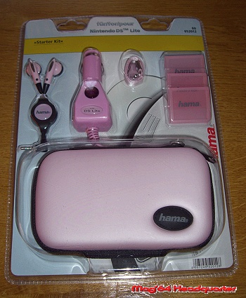 Neben dem Hardcase, in welchem der Nintendo DS lite Platz findet, gibt es weitere nützliche Gegenstände zu entdecken, die einem Nutzer innerhalb des persönlichen Spielerlebens nützlich werden könnten. Die Aufbewahrungsbox ist mit einem Sicherheitsreißverschluss versehen und durch das „Hama“-Logo verziert. Der DS lite findet hier somit ein hübsches Fleckchen, sicher vor Stößen und äußeren Einflüssen. Ein beigelegter Kopfhörer mit Einrollautomatik bietet die Möglichkeit in ungestörter Weise den Sound – abgeschirmt von der Umgebung – zu hören. Problem dabei ist, dass der Tragekomfort auf Dauer nicht optimal und ein Druckgefühl zu verspüren ist.
