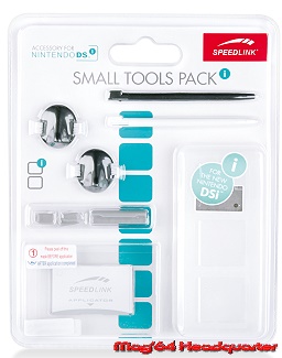 Eine 6in1-Spielhülle liegt dem „Speed-Link“- Set bei, weiterhin zwei zusätzliche auf den Nintendo DSi-Gebrauch zugeschnittene Ersatz-Touchpen (schwarz und weiß), ein Mikrofasertuch, um Fettfilme und Schmutzpartikel zu entfernen, je eine Schutzfolie für Top- und Touchscreen, ein „Werkzeug“ zum Aufbringen der zwei Folien, zwei Daumen-Touchpens sowie diverse Verschlusskappen für alle Nintendo DSi-eigenen Slots und Anschlüsse. Nicht viel, aber wenn man nicht bereits ist, einige zusätzliche Euros auszugeben, dürfte das „Small Tools Pack“ fürs Erste reichen.