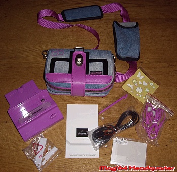 Der Hingucker in dem Set dürfte die Handtasche im Jeans-Stil sein, die durch einen Trageriemen erweitert ist. An diesem ist mit Klettverschluss eine Handytasche befestigt, die genug Platz für alle derzeit aktuellen Geräte bietet. Die Tasche an und für sich ist ein kleines Platzwunder. Ein kleiner Drehverschluss öffnet einen Kunstlederriemen, der nun Zugriff auf den Reißverschluss offenbart. Klappt Ihr die Tasche auf, seht Ihr sechs kleine Jeanstäschchen, die Ihr jeweils für ein Nintendo DS-Spiel verwenden dürft. So sind die Spiele auf Ausflügen sicher geschützt. Weiterhin befinden sich hier Halterungen für zwei Touchpens, ebenso zwei Netzabteilungen für Staubschutzhüllen. Apropos Staubschutzhüllen: Dem „T-Pack for lite girls“ liegt ein Set bei. So könnt Ihr alle Öffnungen des Nintendo DS schließen und diesen bei Nichtgebrauch vor Staub und weiteren äußeren Einflüssen schützen. Mit einem Halteriemen versehen, hat der Nintendo DS im Inneren der Tasche genügend Platz für weitere Utensilien. Im Übrigen liegt dem Set ein Stylus im Girl-Design (Farbe: lila) bei, der ohne weiteres als Ersatz des Originals verwendet werden kann. Stereo-Ohrstecker sind ebenfalls mit dabei: So könnt Ihr auch in der Öffentlichkeit in voller Lautstärke loslegen und müsst keine Rücksicht auf Eure Mitmenschen nehmen.