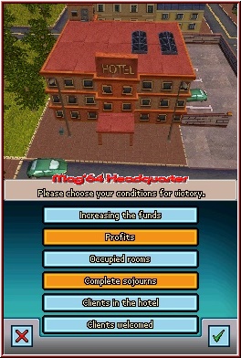 Auch wenn der Karrieremodus nur 15 Missionen beinhaltet, stellt er doch den ersten Anlaufpunkt dar, da man nur hier die möglichen Hotels freispielen kann, die dann in den anderen Spielmodi verfügbar sind. Wie oben schon erwähnt, beginnt man auf der Karriereleiter ganz unten. Man muss ein heruntergekommenes Touristenhotel auf Vordermann bringen und die Belegungszahlen nach oben treiben. So steigert sich der Schwierigkeitsgrad ganz allmählich, bis man uns mit den richtigen Bettenburgen betraut. Doch nicht nur die Belegungszahlen sind wichtig, die Gäste sollen auch zufrieden gestellt werden und erweitern müssen wir die Gebäude auch noch.