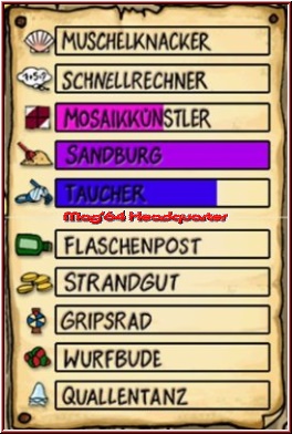 Alle Minispiel-Einlagen hat man im Übrigen schon des Öfteren gesehen, etwas Neues wird nicht geboten, vielmehr Altbewährtes. Etwas spröde gestaltet ist das Ganze, die Handhabung ist nicht sonderlich vorteilhaft, sondern im Grunde genommen lahm. Mit dem Touchpen navigiert Ihr durch die Minispiele, löst einfache Rechenaufgaben oder puzzelt Mosaike entsprechend nach Vorlage zusammen. Im Muschelspiel werden Euch Zahlen vorgesprochen, die Ihr im Folgenden den einzelnen Muscheln zuordnen müsst. Oder aber Ihr erkennt den eigeblendeten Gegenstand so schnell als möglich, führt logische Rätsel (etwa Würfel in Reihen) fort oder entziffert eine in geheimer Schrift abgefasste Flaschenpost. Aus durcheinander gewürfelten Buchstaben bildet Ihr ein Wort, sortiert nicht passende Begriffe aus oder dreht am Gripsrad, um Fragen zu beantworten oder Gripse zu gewinnen beziehungsweise zu verlieren. Je besser Ihr in den spielerischen Einlagen abschneidet, desto mehr solcher „Erfolge" gewinnt Ihr, die dann wiederum im Leuchtturm notwendig werden. Um von Stockwerk zu Stockwerk zu gelangen, müsst Ihr Farbkombinationen lösen, wobei ein farbiger Stein einem zuvor gewonnenen Grips entspricht.