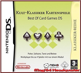 Sammlungen à la „42 Spieleklassiker" von Nintendo haben den Spielemarkt neu aufgerollt und bewiesen, dass selbst altbekannte, teils ausgediente Klassiker – seien es Brett- aber auch Kartenspiele – von großem Interesse sein können. Folglich machte sich eine Vielzahl von Herstellern daran, neues Software-Material zu produzieren, das dieses Genre auch weiterhin bedient, eventuell gar mit zusätzlichen Spielen erweitert. „Kult-Klassiker Kartenspiele - Best of Card Games DS" für den Doppelbildschirm ist ein erster Versuch im Genre, das von unzähligen kostenlosen Umsetzungen „bevölkert" wird, Fuß zu fassen. Wegen der schier übermächtig erscheinenden Dominanz von „42 Spieleklassiker" scheint es aber schwer, den Hausherrn aus seinem angestammten Sitz vertreiben zu können.