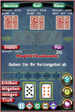 Was hingegen toll klappt, ist die Menüführung: Mithilfe des Touchpens funktioniert diese optimal, hier kann wirklich keine Kritik geübt werden. Was aber immer wieder klar und deutlich ausgesprochen werden sollte, ist die Tatsache der fehlenden Modi. Weshalb ist es nicht möglich, verschiedene „Poker"-Varianten zu spielen, sondern lediglich auf das „Texas Hold’Em" zurückgreifen zu können? Auf Dauer wird man als Spieler damit nicht ausgelastet, man dürstet nach Neuem, wäre hocherfreut, wenn doch wenigstens freispielbares Material dem Titel beiläge. Pustekuchen! So dürftig wie der Inhalt, kann in der Regel doch nicht einmal die Anleitung sein – aber in der Tat: keine niedergeschriebenen Regelerklärungen, sondern nur Bildschirmerklärungen, wobei man bei „Solitär" vergaß, die Bildschirmoptionen mit Zahlen zu kennzeichnen. Sollte nicht passieren, ist aber nun mal menschlich. Ansonsten bietet die Anleitung leider nichts Weiteres.