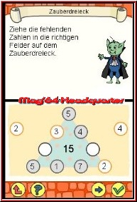 Jeder Themenbereich wiederum ist in unterschiedliche Aufgabenbereiche untergliedert. Ein Fragezeichensymbol verbirgt das Hilfemenü, das Ihr jederzeit anklicken könnt, um Euch Text-Informationen zu besorgen. Allerdings ist beinahe jede Aufgabe selbsterklärend, so dass dies so gut wie nie notwendig wird. Bei maximaler Punktanzahl, also wenn es Euch gelingt, alle Aufgaben eines Blockes korrekt zu beantworten, erhaltet Ihr drei Sterne gutgeschrieben. So wird man immer wieder dazu motiviert, Aufgaben von Neuem zu probieren.