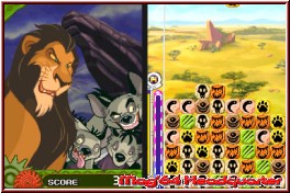 Im "Story-Modus" gilt es anfangs in einem von drei Schwierigkeitsstufen diverse Disney-Geschichten zu ordnen, indem Euch von Jiminy Grille und Naseweis Aufgaben gestellt werden. So setzt sich im ersten Level, Schwierigkeitsgrad "leicht", die Mission aus der Forderung "Starte 150 Blöcke" zusammen. Später müsst Ihr dann schon mal 700 Blöcke in die Luft jagen, eine gewisse Anzahl von Spezialblöcken starten oder durch miteinander kombinierte Blockverbunde genügend Schub erzeugen, um die Steine aus dem Bildschirm befördern zu können. Die Voraussetzungen sind in beinahe jeder Stage unterschiedlich. Entweder fallen die Blöcke von oben in steter Folge, so dass Euch kaum Luft zum Atmen bleibt oder sie haben ein tonnenschweres Hammergewicht; nur Viererkombinationen können dann für genügend Schub sorgen. Abwechslung findet im Spiel also zur Genüge statt.
