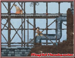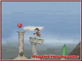Gesteuert wird selbstverständlich nicht mit dem Touchscreen (dieser wird nicht einmal unterstützt ;-) ), sondern mit der guten, alten Knopfbelegung. Mit dem Steuerkreuz lauft Ihr umher oder erkundet die Untiefen des Meeres, springt via „B"-Knopf in die Höhe, boxt mit „Y" nach Euren Gegnern, setzt zum Harpunenschuss an oder bereichert das Spiel per Pistoleneinsatz. Die Missionen hätten nicht platter ausfallen können: ein in der Ferne stationierter Hintergrund, die Plattformen, auf welchen sich das Spielgeschehen abspielt, dagegen im Vordergrund. Vergleichbar mit einem Baukasten, haben die Level-Editoren ein Bauteil an das andere gesetzt, größtenteils unterliegen die Stages einem linearen, strukturierten Aufbau, der neben einem Checkpoint, mit dem Levelziel aufwartet, einem roten Kristall.