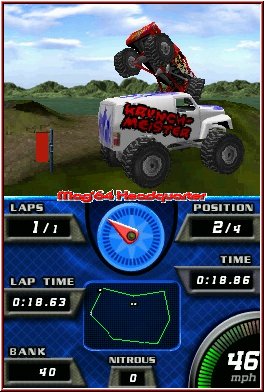 Wenn man sich heute auf die Suche nach den schlechtesten Spielen auf dem GBA macht, muß man in unserem Fall nicht weit zurück gehen. Vor einigen Wochen kam auf Nintendo's Kleinem die Spielesammlung Monster Trucks und ATV Quad auf den Markt, die es leider nur zu einer einstelligen Prozentwertung brachten. Seitdem ist der Entwicklername Skyworks in sehr schlechter Erinnerung. Warum ich das Thema nochmal aufwärme? Ganz einfach. Aktuell gibt es beide Spiele als Einzeltitel auch auf dem Nintendo DS. Skyworks ist zurück und ich war gespannt wie ein Flitzebogen was aus beiden Spielen auf dem Nintendo DS geworden ist. Als erstes schauen wir uns hier das Spiel Monster Trucks DS an.