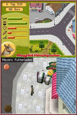 Seid Ihr also erfolgreich ins Spiel gestartet, dürft Ihr Euch überlegen, das eigens dafür verfügbare Tutorial zu nutzen, das Euch an prägnanten Stellen hilfreiche Dienste erweisen kann und den Spieler dadurch - an den einzelnen Spielinhalten vorbeimarschierend - aufklärt. Euer Alter Ego steuert Ihr übrigens entweder mit dem Steuerkreuz oder, wahlweise, dem Touchpen, was im Test allerdings nicht immer so gut funktionierte. Speziell das Laufen stellte ein Problem dar, das besser mit der Knopfvariante gelöst werden kann. Habt Ihr Euch zu Hause zu Recht gefunden, wartet bereits der erste Kunde, der sich ankündigt und sein Tier in Eurer Obhut gut geschützt wissen will. Selbstverständlich gibt er Euch einen Auftrag mit auf den Weg, zu Beginn den Namen des jeweiligen Tier-Gefährten diesem beizubringen. Im Laufe der Zeit werdet Ihr eine Vielzahl von Beauftragungen erhalten, die mit der Zeit alle "abgearbeitet" werden müssen, um die entsprechende Vergütung einstreichen zu können. Leider dürft Ihr immer nur ein Tier durch die Gegend tragen und belehren, gruppenspezifische, gleich lautende Aufträge (zum Beispiel: "Tot stellen!") können nicht ausgeführt werden. Die Möglichkeiten, die Ihr im Spiel habt, sind ansprechend ausgefallen. Neben dem obligatorischen "Gib Pfote!", dürft Ihr den Hund springen und im Kreis drehen lassen, zu Euch kommen, führen oder folgen lassen. Natürlich kann er auch lernen, sich hinzusetzen, will aber für jede erfolgreich durchgeführte Aktion am liebsten ein Leckerli haben. Apropos erfolgreich durchgeführte Aktion: Gelingt Euch dies als Trainer, gibt es Punkte, die hinsichtlich des zu erlernenden Befehls auf einer Skala hinzu addiert werden. Habt Ihr einen bestimmten Wert erlangt, gilt der Befehl als erfolgreich ausgeführt. Wie Ihr an die Sache herangeht, bleibt allerdings Euch überlassen. Zwar gibt es die Option der Sprachbefehle, in der Tat funktionieren diese aber leider nur sporadisch, oftmals wird eine falsche Aufforderung an das zu trainierende Tier weitergegeben. Also solltet Ihr Euch mit dem Touchscreen und der Anwahl der dort verfügbaren Buttons begnügen, was im Test perfekt klappte und keine weiteren Probleme aufkommen ließ. Das Zeichnen bestimmter Befehle funktionierte (Gestenerkennung), allerdings kam es auch hierbei zu einzelnen Unklarheiten, da sich die Zeichen teils sehr ähneln.