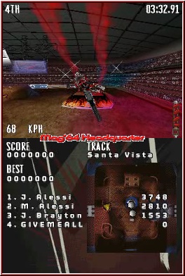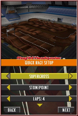 Zwischen den eigentlichen Meisterschaften gibt es zudem noch Bonus Rennen, bei denen Ihr in einem 1-1 Rennen, gegen einen der lizenzierten Cracks im Spiel antretet und euch Beweisen müsst. Die Belohnungen sind dann, wie sehr oft, neue Anzüge oder Skins für eure fahrbaren Untersätze. Auch hier gibt es etwas Kritik. Denn wählt man eine Meisterschaft an, kann man zwar verschiedene Klassen auswählen, und je nach Spielfortschritt auch verschiedene Gefährte samt Aussehen. Ausgestattet mit eigenen Stats sind die Inhalte leider nicht. Es lohnt also nicht unbedingt auf verbesserte Bikes z.b. zu hoffen. Natürlich ist ein Bike der 440er Klasse schneller als ein Gegenstück der 125er Klasse, nur haben die Gegner immer das gleiche Material wie Ihr. Upgrades oder sonstige lohnenswerte Dinge rund um die Bikes,um vielleicht einen Vorteil zu haben, gibt es leider nicht. Hier zählt also nur das reine fahrerische Können des Spielers. Und ob das Bike nun Gelb, Blau oder Rot daher kommt, ist gleich völlig egal. Hier hätte man also ruhig etwas mehr Tiefgang einbauen können. Sobald Ihr eine Meisterschaft anwählt, zeigt man euch die bevorstehenden Kurse und Ihr dürft wie schon angesprochen, wahlweise mit dem Bike, dem Quad oder eben mit dem Truck an den Start gehen. Zudem eben welche Klasse und welches Aussehen man nehmen möchte. Danach beginnt auch schon die eigentliche Action und euch erwarten jetzt überall Rundenrennen mit 2-5 Runden pro Rennen. Durchschnittlich lang reichen die Rundenlängen von 40 Sekunden bis knapp 1 Minute. Geblieben ist die Teilnehmerzahl von 4 Akteuren. Auch hier hätte ich mir mehr, als die schon vom Vorgänger her bekannten 3 CPU Gegner gewünscht. Bei den Trucks fällt das weniger auf, da diese aufgrund der Fahrzeugbreite kaum mehr zulassen. Begleitet werdet Ihr nun auf eurer Jagd nach dem Sieg natürlich von den Screenaufteilungen. Während der Top Screen die eigentliche Action anzeigt, dient der Touch Screen der Anzeige der Karte und Platzierung. Positiv das die Gegner auf der Karte auch als fahrende Punkte dargestellt sind. Der Top Screen bietet dazu die bekannten Einblendungen wie Tacho, Geschwindigkeit und die Anzeige für die Kupplung und Federung. 2 Dinge die man sehr gut hinbekommen hat und vor allem die Indoor Strecken besser machen. Denn allein beim Thema Kupplung Schnipsen lassen, kann man sich jetzt einen kleinen Geschwindigkeitsschub spendieren, ohne das es unrealistisch wirkt, der zusammen mit der Federung die Sprünge über Rampen und Schanzen um einiges angenehmer Fahren lässt. Da im Spiel knapp 30 Tricks enthalten sind, auch zwingend notwendig um diese auch halbwegs alle mal gesehen zu haben.