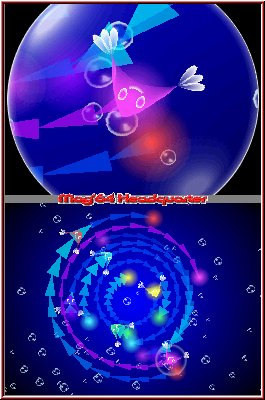 Volvoice, Beatnes, Marine-Snow, Lumiloop, Nanocarp, Rec-Rec, Sun-Animalcule, Luminaria, Hanenbow, sowie Tracy erwarten Euch im Hauptmenü des Spieles, wobei Ihr Euch gleich zu Beginn für alle zehn entscheiden dürft. Demnach müsst Ihr nicht erst bestimmte Plankton-Spezies frei schalten, sondern habt gleich am Anfang den Zugriff auf alle Lebewesen. Die Namen der Tierchen bestimmen zumeist auch ihre Verhaltensweisen. Volvoice ist das Plankton der Stimmeneffekte. Nachdem Ihr es aktiviert habt, dürft Ihr maximal acht Sekunden lang in das Mikrofon Eures DS sprechen. Die Sprache wird für diese Session gespeichert und kann von Euch auf 16 unterschiedliche Arten wiedergegeben werden. Die Möglichkeiten der Stimmverzerrung bieten sich ebenso wie eine vierfache Erhöhung des Gesprochenen. Das Gesagte kann also in den merkwürdigsten Formen wiedergegeben werde, das Plankton agiert dann als sich wiederholender "Papagei".