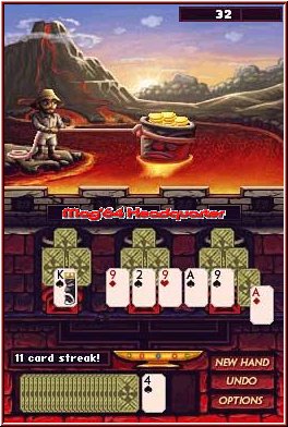 Richtig gut gefallen hat mir unter den Minispielen TriPeaks und stellt eine Solitär Variante dar. Allerdings etwas anders in der Anordnung spielen hier Karten eine Rolle. 3 Stapel werden hier angezeigt, während Ihr am unteren Rand eine bestimmte Anzahl an Karten zur Verfügung habt. Als Ziel steht dabei immer über allem die oberen Stapel weg zu bekommen. Diese geschieht durch Verbinden der Karten. Z.b. liegt auf einem Stapel ein Herz König aufgedeckt. Ist bei nun z.b. unten eine Ass Karte aufgedeckt kann man beide verbinden und vom Screen bringen. Liegt irgendwo nun eine 2 oder nochmal ein König offen herum geht das Spielchen weiter. Immer eine jeweils folgende Karte eurer letzten genutzten Karte ist möglich und fordert durchaus das logische Verhalten des Spielers, da man auch vorausschauend spielen muß. Im späteren Spielverlauf müssen für das Lösen alle 3 Stapel verschwinden, was nicht immer einfach ist. Denn sind eure Karten unten in der Reihe weg ist das Spiel vorbei. Und ist oben partout keine passende aufgedeckt verschwindet unten eine Karte nach der anderen von eurem Stapel. Das langwierigste unter den 5 Minispielen ist Phlinx, der stark nach dem Bust A Move Prinzip arbeit. Ihr habt unten eine Kanone, die Ihr an drei Orten platzieren könnt. Oben im Screen warten verschiedenfarbige Kristalle. Ihr als Spieler müßt nun aus der Kanone farbige Kristalle nach oben schießen um gleichfarbige möglichst zu treffen und so den Screen zu räumen. Denn das Ziel ist auch hier meist ein Score oder das Freiräumen von Objekten. Bandenspiel und Hilfslinien unterstützen euch, während aber die Kristalle ebenso nach und nach gen Kanone wandern. Durch die Masse und Aufgabenstellungen sitzt man hier definitiv am längsten von allen Spielen. Das langweiligste, aber auch hektischste aller Spielchen ist Squelchies. Hier habt Ihr im Screen 6 Reihen von oben nach unten zur Verfügung. In diesen sind die gleichnamigen kleinen Knuddelwesen angeordnet. Verschiedenfarbig kommen diese daher und rücken in gleicher Geschwindigkeit nach unten. Das Ziel ist vor allem diese nicht aus den Reihen fallen zu lassen. Um das zu Verhindern muß man sie im übertragenen Sinne retten.