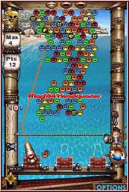 Kern des ganzen sind nun die angesprochenen Minispiele. Diese stammen ausnahmslos vom großen Internetportal und sind hier als Offline Variante für den DS enthalten. Von der Anzahl her allerdings beschränkt findet man nur derer 5 in der DS Varianten. Erreicht Ihr nun ein solches Glücksspielfeld gibt man euch via Anzeige eine Zielaufgabe, die meist im Erreichen eines bestimmten Scores definiert ist. Diese Ziele können mit der Zeit so hoch sein, das Ihr die Minispiele mehrmals hintereinander spielen müßt um das Ziel zu erreichen. Denn erst wenn das Ziel erreicht ist dürft Ihr weiter am Rad drehen oder bekommt eben eines der Kern Spielziele. Die Minispiele selber erinnern teilweise an bekannte Spaßvertreteter dieses Genres und ich stelle diese kurz einmal vor. Der erste Vertreter nennt sich Poppit und wird wie eigentlich alle via Pen auf dem Touch Screen bedient. In diesem Spiel ist der Screen so aufgebaut das Ihr in einem großen Spielfeld zig Ballons zu sehen bekommt. Verschiedene Farben ist es hier das Ziel gleichfarbige und nebeneinanderliegende zum Platzen zu bringen. Logisch das 5 gleichfarbige mehr Punkte bringen als 2. Dementsprechend sind auch die Ziele. Mal gilt es viele Kombinationen mit 2 Ballons zu lösen um später auch mehrere 5er Combos platzen zu lassen. Dabei tippt man via Pen auf einen Ballon und sie verschwinden. Alle anderen Ballons rücken nun aneinander und neue Varianten ergeben sich, bis schließlich keine mehr vorhanden sind. Habt Ihr dann das Ziel nicht erreicht dürft Ihr es nochmal angehen. Kurzweilig und recht spaßig. Der zweite Vertreter nennt sich Word Whomp und krankt am Sprachfeature der DS Version. Eigentlich eine gute Idee wird es hier ohne grundlegende Englischkenntnisse schwer. Hier habt Ihr eine kleine Anzahl an Buchstaben zur Verfügung. Dazu habt Ihr 5 oder 6 Felder in die Ihr diese Buchstaben einpassen könnt. Einfach antippen und ablegen. Das Ziel ist es bis zu 10 verschiedene reale Wörter zu finden, die mal aus 3, 4, 5 oder bis zu 6 Buchstaben bestehen. Wohlgemerkt aber englische Begriffe. Mit den entsprechenden Kenntnissen durchaus ein kleiner Gehirnschmalztrainer, ohne etwas zäh im Lösen.