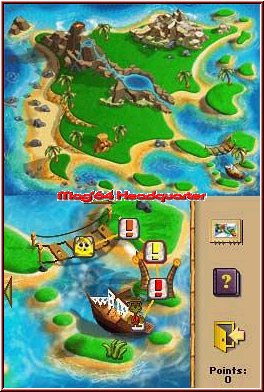 Dazu tippt man z.b. in der linken Reihe einen an, und führt ihn so z.b. in die 5. Reihe wo ein gleichfarbiges zu finden ist. Beide verschwinden und es wird Platz geschaffen, der aber stetig von neuen Squelchies eingenommen wird. Auch hier sind Combos möglich, was das ganze sehr hektisch macht. Dennoch ist vor allem der Zeitdruck in meinen Augen das größte Hinderniss. So lustig oder blöd es klingt. Irgendwann war es mir einfach zu dumm und ich haben den DS wie ein Buch gehalten und wild ohne Ziel über den Screen getippt, gewischt und gezogen. Kurioserweise hat das für die einfachen Challenges gereicht um zumindest auf den Spielfeldern voran zu kommen. Diese Minispiele dienen nun neben dem Verdienen der Tokens auch für die vermißten Charaktere und Bauteile des Schiffes. Habt Ihr diese erspielt dürft Ihr entsprechende Micro Spiele angehen, die aber einfach gemacht sind und ebenfalls mittels Touch Screen gespielt werden. Beispiel sind Nägel die Ihr in Planken schlagen müßt. Eine knappe Minute lang müßt Ihr dabei auf immer wieder aus den Planken herauskommende Nägel antippen und wieder hineinschlagen um einen Zielscrore zu schaffen. Oder in einem anderen ein Segel flicken, in dem Ihr Puzzle Teile aus einem Pool herausnehmt und in das löchrige Segel in die entsprechende Passform einsetzt. Dadurch das man die wichtigen Ziele im Spiel nicht verfehlt und man automatisch auf dem Lauffeldern darauf stoppt ist die Spielzeit mit 3-4 Stunden nicht sonderlich hoch. Auch wenn man das Spiel natürlich ewig und immer wieder neu spielen kann. Wieder Stichwort Token Transfer, die man egal wie oft man neu anfängt im Spiel von Runde zu Runde mitnimmt. Wenn dann sorgen die Minispiele für die Spielzeit, wobei mit Poppit und TriPeaks auch 2 sehr gelungene Varianten auf euch warten. Den Reiz des Spiels macht dennoch etwas anderes aus. Und das ist zumindest für solche Spieler die auch im Internet umherirren der Token Transfer, der wirklich eine feine Sache darstellt. Das Spiel selber ist für ein Minispiel Game a la Mario Party einfach zu simpel und vor allem zu mager in Sachen Inhalt. Ganz nett, aber auf keinen Fall ein Vollpreisspiel.