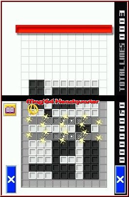 Zwei Spieler erfreuen sich über drahtlose Mehrspieler-Action, wobei es das Ziel ist, am Ende der Zeit weniger Tafeln zu besitzen als sein Gegenüber. Neben den Runden könnt Ihr die zur Verfügung stehende Zeit einstellen, Angriffsitems erschweren das Leben Eures Kontrahenten. Beispielsweise erhöht Ihr die Geschwindigkeit der Tafeln, welche Ihr Eurem Gegner auf seinen Bildschirm sendet, oder aber Ihr ändert die Farben der Tafeln in ihre entgegen gesetzte Farbe. Besonders fies ist es, wenn Ihr den Rahmen, der sich um das Spielfeld herum befindet, für eine Zeit lang sperrt. Generell könnt Ihr Euch hier mit Eurem Touchpen frei bewegen, mit dem "Rahmenverbotsitem" bleibt dieser Bereich jedoch gesperrt. Auch im Zwei-Spieler-Modus kann das Spiel uneingeschränkt punkten, weitere Modi hätten dem Multiplayer jedoch nicht geschadet.