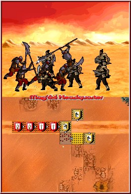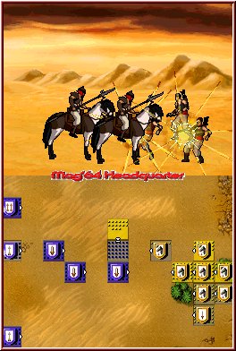 Grafisch ist der Titel in jeglicher Hinsicht altbacken, Standbildchen dienen als Zwischensequenzen, Animationen sind im Spiel im Grunde genommen nicht enthalten. Die lächerlich wirkenden Einheiten in Form von Wappen wirken auf den spärlichen Karten einfach nur antiquiert. Zwar funktioniert das Spiel auch ohne gute Grafik, ein wenig mehr hätte ich mir schon erwartet - vor allem, weil es sich um ein Nintendo DS-Spiel handelt.
