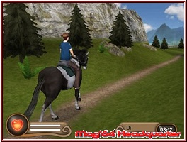 „Independent Arts Software", die Entwickler einiger dtp-Titel, haben sich bei „Pferd & Pony – Mein Gestüt – Ein Leben für die Pferde" erneut auf bekanntes Terrain begeben (nach „Pferd & Pony – Mein Gestüt") und das Spiel nach dem Vorbild zahlreicher hauseigener Titel konzipiert. Nachdem Ihr Euch für eine Sprache entschieden habt, landet Ihr sogleich im Hauptmenü („Story-Modus", „Instant-Modus", DS-Datenübertragung", „Optionen"). Der „Instant-Modus" kann als pure Minispiel-Erholung für alle Mädels angesehen werden, da Ihr hier mit einem Pferd Felder, Berge und Wälder unsicher macht und aus einer hübschen 3D-Perspektive das Gelände bereitet. „Hübsch" ist in der Tat der passende Ausdruck – man hat sich Mühe gegeben, die Grafikschlamassel von anno dazumal über Bord zu werfen. Selbst ein paar Minispiel-Einlagen wurden in die Ausreit-Passagen integriert: So tippt Ihr kurzzeitig erscheinende Hufe an, um zu springen oder berührt Pfeile entlang ihrer vorgegebenen Krümmungsrichtung. Spielerisch abwechslungsreich ist das Ganze auf Dauer zwar nicht, immerhin stellt es aber auch nur einen Randaspekt des eigentlichen Spieles dar. Gespeichert wird wie immer auf einem von drei batteriegestützten Speicherplätzen direkt auf der Spielkarte. So ist es möglich jederzeit das Spiel zu stoppen und auf Wunsch vom letzten Punkt aus fortzusetzen.