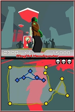 Da zumeist mehrere Farbelemente auf einem Screen erscheinen, müsst Ihr des Weiteren auch noch Vorsicht walten lassen, da in einem Turn, wie gesagt, nur gleichfarbige Buttons in das Konstrukt einfließen dürfen. Berührt Ihr aus Versehen eine weitere Farbe, geht einer Eurer drei Lebenspunkte flöten. Ebenso warten Spezialpunkte darauf, kassiert zu werden. Dies ist allerdings nur dann möglich, wenn ein sternförmiger Punkt in einen Style eingebaut wird und dieser als Anfangs- und Endpunkt fungiert. Euer Punktekonto wird es Euch danken, keine Frage. Die größtmöglichen Formen garantieren Euch übrigens eine „Perfekt"-Auszeichnung, die im Folgenden zu Multiplikatoren führt und weitere wertvolle Punkte auf den Highscore addiert. 14 zusätzliche Minispiele, die immer mal wieder zwischen den Styles auftauchen, sorgen für Kurzweil, obwohl der Innovationsfaktor gering bleibt. Beispielsweise müsst Ihr einen B-Boy anhand von einer Punktelinie nachzeichnen oder diesen mit Farbe vollsprühen, sowie abwechselnd Button-Smashing auf dem Screen betreiben. Erst nach und nach schaltet Ihr alle Minispiele frei, die dann über das Hauptmenü jederzeit gespielt werden dürfen. Schade ist jedoch, dass die auf dem Topscreen dargestellten Breakdances nur mit einem schielenden Auge betrachtet werden können, da das Geschehen nun mal auf dem Touchscreen abläuft. Umso besser aber, dass im Nachhinein eine Wiederholung Eure Künste ein weiteres Mal zeigt.