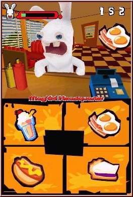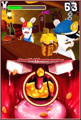 Das in einem Spiel nicht unbedingt das drin sein muß was auch draufsteht, wissen wir spätestens seit dem Start der neuen Rayman Serie auf der Wii. Natürlich spielt Rayman als Charakter irgendwo schon eine Rolle. Allerdings eher als Nebenbuhler. Hauptsächlicher Inhalt waren und sind die unglaublich blöden und dennoch herrlich in Szene gesetzten verrückten Hasen, die Bunnies. Selten das man mit Bunnies mal nicht die Playboy Girls meint, sondern eben nicht ganz ernstzunehmende und fast immer wie unter Drogen stehend, wirkende Langohren meint. In diesem Winter ging die Serie nun in die zweite Runde, von der man eigentlich nur eines erwartet. Noch abgedrehtere Action und Minispiele, die den Gamer noch mehr zum Schmunzeln bringen. Auch zum zweiten Teil gibt es wieder je eine Version für den Wii und den DS Gamer. Wir schauen uns zuerst die DS Version an. Im Vergleich zu seinem eigenen Vorgänger hat sich hier wohl mit am meisten getan. Setzte man im ersten Teil noch auf eine Mischung aus Jumper und Minispielen, dreht sich hier nur noch alles um das Thema Minispiele.