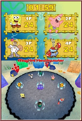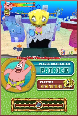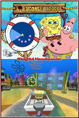 Mittels B-Taste können die Charaktere um sich schlagen, während die X-Taste den Special abdeckt, der erneut bei jedem Charakter anders ist. Spongebob kann eine große Blase erschaffen und auf Gegner abfeuern, während man Patrick solange aufladen kann bis er nach oben saust und mittels Platscher alles am Boden zerbröselt was in seiner Nähe ist. Dabei kann man allen Steuervarianten eine sehr gute Ausführung bescheinigen und alle Aktionen gehen angenehm leicht von der Hand. Alle Level bieten aufbauend auf diesen Moves die schon erwähnten kleinen Schalter und Wege Rätsel. Weiter aufgelockert wird nun das ganze Gameplay durch reichlich Minispiel Action. In regelmäßigen Abständen warten diese Spielchen, die auch sehr oft in alternativen Sichtweisen vonstatten gehen. Einmal fahrt Ihr wie in einem 3D Racer mit den beiden durch Bikini Bottom und müsst dabei 60 Quallen via Schussaction erledigen. Während Ihr selbstständig fahrt, wird per Pen Berührungen auf die Gegner auf dem Touch Screen geschossen. Später spielen auch die anderen findbaren Charaktere eine große Rolle, die alle so ihre eigenen Minispiele mitbringen. Beispielsweise muss man Mr.Krabs unentwegt Geldsäcke zu werfen, damit er sich euch anschließt, oder aber Sandy darf in einem 3D Prügel Minispiel das Fürchten geleert werden. Spätestens wenn Ihr die zweite große Hauptwelt - den Kontinent Mu erreicht, schaltet man weitere Charaktere frei, so das man ab jetzt vor jedem Levelbesuch die Spielpartner frei wählen darf. Aufgrund verschiedener Fähigkeiten und Aufgaben sinnvoll und passend. Um Atlantis überhaupt zu erreichen muss zwangsläufig der magische Bus mit Treibstoff versorgt werden. Dies geschieht ebenfalls über Minispiel Action, bedarf aber dem reichlichen Sammeln von Muscheln.