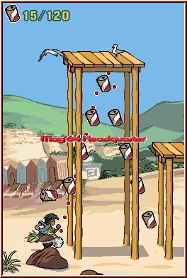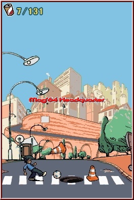 Den Minispielen gemein ist die Tatsache das man über mehrere Runden agieren muss. Etwas nervig das ein Scheitern im dritten Durchgang z.b. jedes Mal zum kompletten Neuanfang führt. Das ist ein wenig umständlich, weil manche Minispiele dadurch auch ein wenig langatmig werden können, wenn man dauernd alles wiederholen muss. Beispiel dafür sind die eigentlich gelungenen Feldspiele, bei denen die Sicht über beide Screens auf einen Bolzplatz geht. Auch geht es mal darum in mehreren Durchgängen z.b. vom Touch Screen aus via Wisch Bewegung direkt in das Tor im Top Screen zu treffen, oder unter Zuhilfenahme der Bande. Etwas das ich wiederum sehr gut finde. Im Gegensatz dazu gibt es auch ein Minispiel wo Ihr im Tor steht und wieder den Pen auf den Charakter haltet und bei Schüssen zu den Seiten bewegt. Lässt man hier aber eben den allerletzten Ball im dritten Durchgang ins Tor, fängt man dieses Minispiel komplett von vorn an. Auf jeden Fall sind sie aber abgesehen von diesem Kritikpunkt recht nett gemacht und unterhaltsam. Zwischen den Minispielen und dem Adventure Part gibt es als dritten Gameplay Teil die sogenannte Plateauphase. Eigentlich nichts anderes als ein automatisierter Jump’n Run Abschnitt. Immer dann wenn Ihr von einer Location zur nächsten das erste mal wandert, gibt es diese Einlagen. Hier geht es scrollend ohne Halt immer von links nach rechts. Ihr als Spieler seid hier eigentlich nur am reagieren. Ebenfalls steuerbar via Touch Screen oder Tasten sind die einfachsten Varianten die A-Taste für den Sprung und Kreuz unten um sich duckend und rutschend unter Hindernissen hindurch zu zwängen. Bleibt man irgendwo hängen oder ein Gegner trifft einen fängt man sofort am letzten Rücksetzpunkt an. Damit es auch nicht zu einfach wird hat man auch hier ein kleines Nerv Feature eingebaut. Denn neben dem Erreichen des Endpunktes muss man z.b. von 120 enthaltenen Dosen 100 einsammeln. Findet man nur 99 fängt man wieder komplett von vorn an. Hier ertappt man sich öfters mal in Abschnitten, wo man sieht das über einem Dosen nicht erreichbar sind, sich danach von einem Gegner treffen lässt um eben diesen letzten Abschnitt noch mal anzugehen.