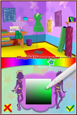 Selbstverständlich wird Euer Können aber auch in anderen Situationen gewünscht. So sollt Ihr ein professionelles Make-Up anfertigen, samt Lippenstift, Kontaktlinsenfarbe, Lidschatten, Wimperntusche und eventuellen Mustern, wie Sternen oder Gesichtsbemalung. Wie wäre es, wenn Ihr Euer Model mit einer schicken Brille ausstattet, passende High-Heels hinzufügt und der Schönheit nun noch ein Luxus-Täschchen um die Schulter hängt? Kein Problem, das Programm erlaubt diese Dinge zu jeder Zeit. Wie oben bereits erwähnt, ist es ebenfalls möglich Halsketten zu kreieren - eng anliegend oder als Collier, nach Wahl auch mit wertvollen Anhängern verziert. Hier sind die Möglichkeiten ziemlich eingeschränkt, man hätte durchaus einige zusätzliche Accessoires hinzufügen können. Von Zeit zu Zeit ist es gar gefordert Unterwäschemode zu präsentieren - und zwar vor der Kamera in einem professionellen Shooting. Auf Knopfdruck lasst Ihr das Model vor der Kamera posieren, zoomt auf das Objekt der Begierde und drückt im geeigneten Moment ab. Schwarz-weiß-Filter, Panoramaaufnahmen und unterschiedliche Hintergrund-Motive sorgen für Abwechslung im Foto-Alltag. Auch als Friseur geht es ans Eingemachte: die zur Auswahl stehenden Frisuren dürfen leider nicht selbst gestaltet werden, sondern aus einem Repertoire ausgewählt werden. Bei der Farbe habt Ihr allerdings freie Hand. Der Abschluss und somit das Highlight des Spieles dürfte der Laufsteg-Auftritt sein, denn hier müsst Ihr das Gesamtkunstwerk nun präsentieren und das möglichst ohne Fehler. Das dargestellte Model läuft während des Events über den Steg, aufploppende Stern-Symbole solltet Ihr im richtigen Moment mit dem Touchpen antippen, ebenso Symbol-Formen einigermaßen detailgenau nachzeichnen. Ab und an fordert Euch das Programm auf, in einer Reihe stehende Schuhsymbole exakt zu berühren. Abschließend erscheint gar eine Model-Stellung, die dann in einem kurzen Zeitraum aus einer Auswahl erkannt werden will. Gelingt Euch der Touchscreen-Marathon, werdet Ihr von Erfolg gekrönt - das dürfte aber kein Problem sein, denn Anspruch hat der Titel kaum!