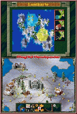 Auf dem PC waren seinerzeit 256x256 das Maximum. Die größte Karte in der DS Version ist 208x112 groß. Im Durchschnitt sind die großen Karten alle im 144x144 Format gestaltet, weshalb man alle Original Karten bis zu dieser Größe auch in der DS Version findet. Schade das es die 160x160 Karten nicht gibt. Denn gerade das Szenario Weihnachten im Original habe ich ja teilweise bis zum Erbrechen gespielt. Ausreichen tun die Kartengrößen aber dennoch bei weitem. Was natürlich auch an den DS Screens liegt, die nunmal nicht mit 1000er Auflösungen auf einem 19Zoll Monitor vergleichbar sind. Siedler 2 Kennern und auch Neulingen will ich nunmal anhand einer beliebigen Mission das Gameplay vorstellen und zeigen was das Game technisch und spielerisch so drauf hat. Oder eben leider nicht. Auch hier steht über allem das man jederzeit in einer Mission oder einem Szenario speichern kann. Dauert zwar etwas und man könnte kurzzeitig denken das ganze hätte sich aufgehangen, ist aber ein ganz wichtiger Punkt in Sachen Langzeit Motivation. Zumindest wäre es. Denn hier kommen 2 Negativpunkte zum Tragen. Zum einen ist der Moment nach dem Speichern zu gerne Absturzfreudig und zum anderen ist 1 Speicherplatz viel zu wenig. Wer neben einer Kampagne zwischendurch mal ein Freies Spiel zocken will schaut in die Röhre oder nutzt den Umweg über das AR um die Savegames via PC hin und herzuschieben. Denn viele Karten kann man locker bis 10 Stunden und mehr spielen. Und an einem Stück wäre das ohne das Speichern Jederzeit Feature natürlich etwas mäßig. Auch hier bot die Preview mit 3 Speicherplätzen das was man auch in der Final erwartet hätte. Das Spielprinzip der Aufbausimulation wird nun in den Siedlern für den DS wieder extrem voran getrieben. Ihr als Spieler startet auf einer Karte an einem beliebigen Ort und habt als Gebäude nur das Hauptquartier. Dieses Hauptquartier dient als Lager und Basis für Soldaten und ist Ausgangspunkt für alles was nun vor euch liegt. Im Lager stehen euch von bestimmten Rohstoffen und Berufsgruppen eine begrenzte Anzahl zur Verfügung. Euer Ziel als Spieler ist es nun die durch schwarze Bereiche verhüllte Insel komplett kennenzulernen und je nach Ziel die Gegner zu elimieren oder ein Tor zu erreichen.