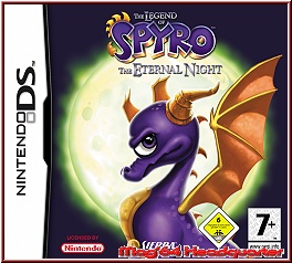 Spricht man in der Videospielwelt von einem lila Drachen, wissen viele unter euch sofort um wen es sich dabei dreht. Vivendi's kleiner Racker Spyro macht nun schon seit Jahren, zusammen mit Crash Bandicoot jedes Jahr aufs neue die Konsolenplattformen unsicher. Highlights waren sicherlich vor allem in Sachen Spielzeit und Umfang die alten GBA Teile. Beim DS, der mittlerweile 2 Umsetzungen bekommen hatte, kehrte man diesem doch recht unterhaltsamen Gameplay teilweise den Rücken und machte aus Spyro mehr einen Action Drachen, statt ihm weiter die Adventure und Jumper Rolle zuzuweisen. Ausnahme war da noch Shadow Legacy, der gefallen konnte. Auch in diesem Winter darf der kleine Drache erneut zeigen was er kann und Haus und Hof Entwickler Amaze kümmerte sich erneut um die Umsetzung. Neben der Wii Version, die wir euch die Tage vorstellen, läßt Spyro seinen Feueratem auch wieder auf dem DS los. Allerdings und das muß man hier durchaus schonmal erwähnen ist Eternal Night in einigen Bereichen fast schon eine Mogelpackung. Warum ich zu dieser Meinung komme, verraten euch die kommenden Zeilen.