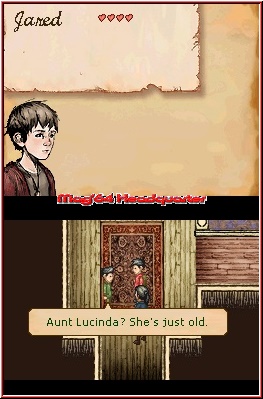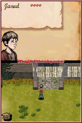 Sobald Ihr ein Neues Abenteuer beginnt, startet das Spiel mit einer einführenden Story Sequenz, die sich mit dem Verfasser des Buches, Arthur Spiderwick befasst. An deren Ende begleitet Ihr zunächst die Geschwister beim Einzug in ihr neues Heim im Spiderwick Anwesen. Dabei macht Ihr als Spieler zunächst Bekanntschaft mit den wichtigen Features Grundsteuerung und Sichtweise. Die Sichtweise im Spiel grob eingeteilt in 2 Bereiche eingeteilt, was übrigens auch für das Gameplay selber gilt. Auf der einen Seite habt Ihr den Iso Blick im Adventure Teil, sprich wenn Ihr euch einfach laufend durch die Gegend bewegt. Dazu kommt das in einem RPG obligatorische Kampf Gameplay, das in separaten Bildschirmen und der RPG typischen Sichtweise von der Seite enthalten ist. Zu Beginn geht es aber erstmal darum ein bischen umher zu laufen und die unmittelbare Gegend zu erkunden. Später im Verlauf des Spiels erhaltet Ihr Zugriff auf eine Karte um auch zwischen den angrenzenden Gebieten hin und her wechseln zu können. Zu Beginn seid Ihr erstmal nur mit Jared unterwegs und steuert ihn beim Erkunden des Anwesens. Auch wenn Ihr später mit allen 3 Charakteren gleichzeitig umher wandert, ändert sich das nicht und Ihr bewegt sichtbar nur Jared. Im Adventure Modus ist die Steuerung und damit das Laufen gleich auf 3 verschiede Arten umgesetzt. Ihr könnt Jared wahlweise wie gewohnt per Kreuz bewegen, dies auch per Action Tasten tun oder Zelda like auch per Pen, in dem man einen Punkt antippt oder diesen über den Touch Screen führt. Was auch bedeutet die Sichtweise ist immer gleich. Alles was Action angeht passiert auf dem Touch Screen, während der Top Screen Infos zu den Helden beherbergt.