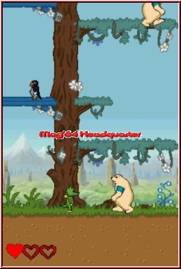 Dass der grüne Drache sogar vergleichbar mit Tarzan an Lianen herumschwingt und Objekte durch Krafteinfluss in ihre Einzelteile zerlegt, ist schon beachtlich, typischer hingegen für ihn ist das Feuerspeien, das durch Pusten in das Mikrofon initiiert wird. Obwohl Tabaluga anfangs nicht des Fliegens mächtig ist, lernt er dies bereits nach kurzer Zeit, denn diverse Plattformen sind ohne den Einsatz der Flügel einfach nicht zu erreichen. Was uns gut gefällt, sind die Levels, die zwar durch Richtungspfeile bestückt wurden, dennoch gibt es genug Freiraum, um geheime Bonus-Gegenstände zu entdecken. Mit ein wenig Geschick und einer detektivischen Spürnase macht Ihr Euch auf die Suche nach gefangen genommenen Grünländern oder sammelt Farbtöpfe, um dem verblassten Regenbogen wieder seine Farbe zurückzugeben. Einige hundert Sterne pro Level sind ebenso für unseren Protagonisten von Bedeutung. Eventuell erwartet Euch bei erfolgreichem Vorgehen ja eine kleine Überraschung? Was uns aber besonders gefällt, auch wenn es spielerisch recht monoton abläuft, ist das Ausschalten von Widersachern. Diese in unterschiedlichen Ausführungen herumlaufenden Bären, schneeballschießenden Pinguine oder flatternden Urzeitvögel werden allesamt durch einen beherzten Hüpfer auf den Kopf ausgeschaltet. Nicht anders ist das Vorgehen bei den seltenen Endbossen. Anderenfalls kann aber gesagt werden, dass nach eurem Leben trachtende Stacheln und herunterfallende Stalagtiten für weitere Gefahren sorgen und nur durch vorausschauendes Agieren umgangen werden können.