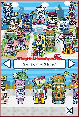 Schaltet man das Spiel ein wird man sofort von dem teils schrägen, gewöhnungsbedürftigen und für Fans sicher schon kultigen Grafikstil begrüßt. Dieser begleitet euch durch das gesamte Spiel und gibt dem ganzen natürlich seinen einzigartigen Look. Konkurrenz in diesem Stil findet man auf dem DS auf keinen Fall. Als erstes legt Ihr ein Profil an und wählt aus 3 Tamagotchi Charakteren einen Helfer aus, der euch nun durch das Spiel begleitet. Während Ihr die Arbeit erledigt ist er grafisch immer und überall präsent im Spiel. Danach wartet das Hauptmenu, das wie alles im Spiel seine ganz eigene Umsetzung hat. Hier bietet man euch mehrere Punkte. Über allem steht der Punkt Läden eröffnen, was eigentlich nichts anderes als der Hauptmodus ist. Dazu kommen spezielle Läden in denen Ihr als Kunde Dinge für euren Mitstreiter kaufen könnt. Anfangs ist hier allerdings alles noch deaktiviert. Einen großen Wert legt das Spiel auf Verbindungen mehrerer Connexion Spieler, so das man für Nachrichten samt Anhang, Bilder und ähnliches spezielle Menupunkte findet. Zu guter letzt warten die Optionen, in denen man neben dem Autosave die Handhabung, sprich Links oder Rechtshänder einstellen kann. Abgerundet von den Einstellungen für Musik und Effekte, die ebenfalls etwas ganz eigenes im Spiel darstellen. Wie so vieles. ;-))