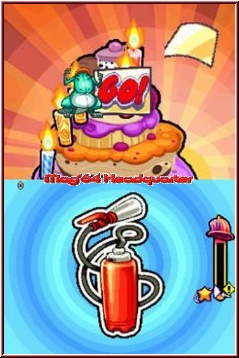 Sobald ein Einsatz startet schwenkt die ganze Szenerie um, und Ihr seht euch nun im ersten Gameplay Teil. Mit dem Einsatzwagen unterwegs, gilt es nun innerhalb eines Zeitlimits den Brandherd zu erreichen. Zeitlimit deshalb, weil euch in allen Teilaufgaben einer Missionen ein kleiner Countdown im Nacken sitzt. Links oder Rechts, je nach gewählter Handeinstellung, sieht man einen vertikalen Balken. In diesem läuft zum einen per Strich Einblendung die immer fest ablaufende Einsatzzeit. Ihr als Spieler müsst nun durch ein farbliches Füllen dieser Balkenanzeige immer vor diesem Strich agieren. Beim Fahren mit dem Fahrzeug ist das ganze ebenfalls klar abgesteckt. Der Wagen fährt je nach Ausstattung und Tuning erstmal selbstständig. Ihr als Spieler habt hier nur 2 Möglichkeiten. Zum einen natürlich entweder nach links oder rechts zu lenken und zum anderen die Sirene einzusetzen. Diese könnt Ihr nicht unendlich einsetzen, bringt aber halt den Vorteil das alle anderen Verkehrsteilnehmer vor euch Platz machen. Ansonsten muss man sich halt durch den Verkehr schlängeln. Verschiedene Symbole kann und muss man aufsammeln und kann über Beschleuniger das Tempo immer mal erhöhen. Erreicht Ihr den Zielort ohne groß Fehler zu machen, gibt es den ersten von immer mehreren Sternen pro Einsatz. Und nur wenn Ihr z.b. alle 3 oder 6 Sterne holt, gilt die Mission als 100% gelöst und man bekommt ein neues Tuning Teil für den Einsatzwagen. Einmal angekommen wartet nun die eigentliche Action, die oft an Minispiele a la Nintendo DS erinnert. Lobenswert aber dennoch, das reichlich Gebrauch von den Features des DS gemacht wird. So wartet in der einfachsten Aufgabe das Ausblasen diverser Kerzen auf einer Torte. Wieder sitzt euch die Zeitanzeige im Nacken und man sollte sich nicht zuviel Zeit lassen. Weiterer dieser Minispieleinlagen reichen nun z.b. über das Auf und Zudrehen von Wasseranschlüssen oder dem Hochklettern an Leitern, bei dem man abwechselnd auf hier dargestellte Hände tippen muss, um langsam nach oben zu kommen. Später sieht man vor sich ein großes Hochhaus und muss schnell auf den durchlaufenden Etagen die Brände löschen. Alles noch recht easy gibt es aber auch durchaus Aufgaben, die etwas mehr Anspruch haben und auch eine kleine Prise logisches Denken mitbringt.