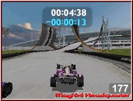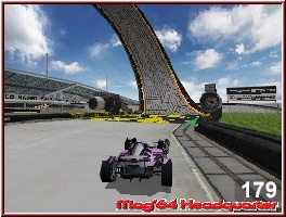 Für einen Racer das wichtigste Kriterium, die Flüssigkeit des Spiels. Und die ist hier zweifelsfrei gegeben. Egal ob man den Looping hoch oder runter rammelt, die Rampen im Pack bezwingt – alles läuft aalglatt. Am Horizont ploppen keine Landschaften oder Streckenabschnitte auf, man sieht den Pistenverlauf permanent vor seinem Auge. Das man für die kleinen optischen Aufhellungen, wie Dörfer oder Windmühlen und Ballons eigentlich keine Zeit zum Betrachten hat, ist ein wenig schade. Aber sie sind da.