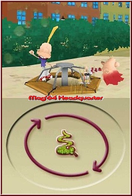 Insgesamt warten 36 Minispiele im Spiel auf euch um gelöst zu werden. Und wie sich zeigen sollte sind bis auf wenige Ausnahmen fast alle nur mit den speziellen DS Features lösbar. So kommt also neben dem Touch Screen auch das Mikro mal wieder zu seinem Recht. Beginnt ein Minispiel bekommt Ihr einen speziellen Bildschirm mit der Aufgabenstellung, was gleich auf euch wartet. Man klickt auf Weiter und los geht das Minispiel. Die Minispiele reichen nun von Geschicklichkeitsvarianten, über Zeichnen und Pustespielchen bis hin zu Minispielen die das Gehirn anstrengen. Traut man dem Spiel anfangs Tiefgang nicht unbedingt zu, so merkt man schnell das viele Minispiele durchaus sehr durchdacht gemacht sind. Ein paar Beispiele sollen euch das verdeutlichen was hier auf euch wartet. Ausgerüstet mit dem Pen warten viele Zeichnen und "Rubbelspielchen" auf euch. Dabei wird das ganze visuell auch im Top Screen dargestellt, während unten die Action wartet. So gilt es z.b. auf einem Karussel einen von Titeufs Freunden dazu zu bringen, sein Frühstück wieder unter die Leute zu bringen. ;-) Dazu muß das Karussel so schnell gedreht werden, das sich eine Magenanzeige füllt. Also müssen mit stetig schneller werdenden und genauen Bewegungen auf dem Touch Screen Kreise gezeichnet werden. Oder Ihr müßt in mehreren Stufen vorgefertige Muster ausmalen, ohne dabei die Linien zu übermalen. Das ganze mit Zeitdruck und immer verzwickteren Motiven recht gelungen. Weiterhin kommen Geschicklichkeits Varianten dazu, in denen man oft im richtigen Moment eine Aktion über den Touch Screen auslösen muß. 2 Buttons z.b. für Laufen und Springen, während oben im Screen in einer von links nach rechts gehenden Jumper Einlage Titeuf vor einem Halbstarken wegläuft. Dazu bietet das Spiel auch Minispiele, die durchaus für Erwachsene herhalten können und den Grips ein wenig anstrengen.
