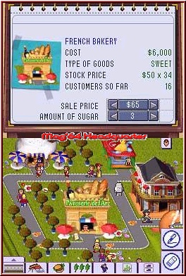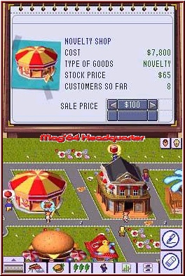 Irgendwann geht das Geld aus und neue Dinge die man dringend braucht sind nicht mehr bezahlbar. Man kann sich hier schnell in eine Sackgasse verrennen. Baut man zu abartig findent die Leute manche Dinge nicht und allein das Thema Hinweisschilder die man bauen und beeinflussen kann wird immer wichtiger. Ich habe bestimmt allein 10x die erste Location angefangen um immer wieder mal was neues zu probieren und dem Versuch es eben besser zu machen. Mal aggressiv in Sachen Geld ausgeben und mal vorsichtig. Und wer denkt das reicht schon kommt um das Lagersystem nicht herum. Eure gesamten Imbißbuden bis hin zu Restaurants und ähnlichem beziehen ihre Waren aus einem Hauptlager. Ihr müßt dafür sorgen das immer Nachschub da ist. Kauft man vielleicht zu spät ein oder hat kein Geld, kann es sein das auf einmal alle Burgerbuden nichts mehr verkaufen. Auch hier bekommt man immer Hinweise vom Charakter, dennoch übersieht man vieles auch mal. Denn je größer der Park um so mehr hat man zu tun. Positiv eben das die Entwicklung nie aufhört und man alles immer wieder anpassen kann und muß. Hier zeigt Theme Park einem Zoo Tycoon schon die Rücklichter und bietet vor allem auf lange Sicht Dauermotivation oder eben auch Frust. ;-) Hat man dennoch mal einige Zeit um nur zuzuschauen wie und ob sich der Park entwickelt, Stichwort Liveanzeige des Kontostandes, so läßt einen ein neues Update oder Objekt sofort wieder in Arbeitswahn verfallen. Auch wenn man zu Beginn über die vorhandenen Möglichkeiten mosert. Das Spiel versteckt seine Vorzüge anfangs sehr gut und man muß einige Jahrzehnte spielen um alle Facetten mal gesehen zu haben. Von daher ist Theme Park eine sehr gelungene WiSim auf dem DS, die auch gehobenen Ansprüchen gerecht wird. Wer hier starr denkt wird nicht lange spielen. ;-) Man hat immer zu tun und muß andauernd auf Ereignisse reagieren.