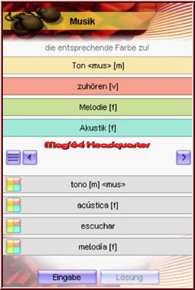 Das „Vokabeltraining" ist ein Sammelsurium dreier verschiedener Miniaturprogramme, bestehend aus „Sprachlabor", „Diktat" und „Hörverstehen". Ersteres dient dazu, dass Ihr ein spanisches Wort vom Programm aufzeichnen lassen könnt und dann den direkten Vergleich habt: Sprecht Ihr das Spanische richtig aus? Ist die eigene Intonation korrekt? Das „Diktat" erlaubt Euch hingegen das Hörverständnis zu verbessern. Ein Text, gefüllt mit Platzhaltern, muss von Hand gefüllt werden. Dies erfolgt entweder per Hand oder per Tastatureingabe. Ebenfalls dem „Hörverstehen" folgend, läuft die Übung mit den Soundfiles ab. Ein deutsches Wort wird eingeblendet, unter drei Schaltflächen wartet mitunter die richtige Lösung in der spanischen Übersetzung. „Vokabelkarten" dienen dazu, das Vokabular systematisch zu verinnerlichen, in dem Ihr etwa die Übersetzungen exakt trefft. Euer Fortschritt wird hier klar festgestellt und Ihr habt jederzeit die Möglichkeit zu sehen, wie weit fortgeschritten Ihr bereits seid. Bei den „Vokabelspielen" wartet ein „Buchstabenmix", ein „Schiebepuzzle" sowie eine „Farbverknüpfung" auf Euch, alles Spiele, die intelligent umgesetzt wurden und ihren Zweck vollends erfüllen. Wären mehr als die angepriesenen 4.000 Vokabeln im „Vokabeltrainer Spanisch" enthalten, wäre der Nutzen natürlich umso intensiver.