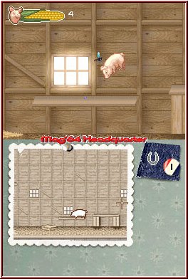 Hin und wieder ist es möglich den Fortschritt an vorgegebenen Stellen während eines Levels zu speichern. Fern, die Wilbur in ihr Herz geschlossen hat, schenkt ihm zusätzlich verloren gegangene Lebensenergie innerhalb eines kleinen Minispiels. So müsst Ihr das Schwein per Touchscreen streicheln, einseifen oder aber bürsten. Ebenfalls pflegt Ihr seine Zähne oder bringt ihm Futter durch ein Labyrinth. Die Einfälle sind witzig und sorgen für Abwechslung. Überhaupt haben die Entwickler eine Menge Ideen im Spiel umgesetzt: Zu Beginn eines Levels weckt Ihr Wilbur beispielsweise mit einem Ruf in das Nintendo DS-eigene Mikrofon. Hat es diesen vernommen, schreckt das Schwein auf und ist bereit von Euch gesteuert zu werden.