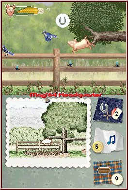 Jedes der 16 Levels ist sehr linear in Szene gesetzt und sollte ohne Orientierungsschwierigkeiten gemeistert werden können. Das Abenteuer findet im Topscreen des Nintendo DS statt, der Touchscreen wartet mit einer vereinfachten Levelkarte auf, die Ihr Euch mit dem Touchpen bei Bedarf zu Gemüte führen könnt. Besonders wichtige Objekte werden hier durch ein Symbol markiert. Ebenso ist es möglich Wilburs Zusatzfähigkeiten über den Touchscreen zu initiieren. In den einzelnen Kapiteln findet Ihr eine Vielzahl von Hufeisen, blauen Noten, einer Art Schutzschild, sowie Melonen. Jedes dieser Power-Ups besitzt eine eigene Fläche, die durch Druck aktiviert wird und die zu Grunde liegende Eigenschaft startet. So schlägt unser Protagonist bei Einsatz eines Hufes wie ein Pferd aus und vertreibt so aggressive Angreifer im Nu. Eine Note wiederum veranlasst Wilbur zu singen. Derartig grässliche Töne vertragen seine Feinde nicht ohne weiteres. Mit dem Schild kann das liebenswerte Tierchen ohne Verletzungen durch Dornenbüsche hindurch. Eine Melone hingegen erweitert Templetons Fähigkeiten: Ist er in Gefahr versteckt er sich einfach unter der süßen Frucht.
