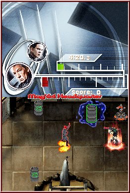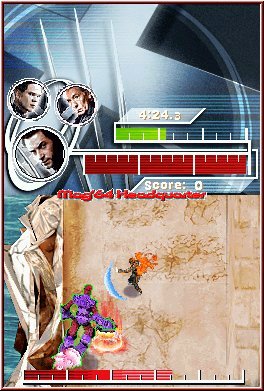 Hier haben sich die Entwickler eine durchaus gelungene Variante einfallen lassen. Denn alles was an Action auf dem Screen abgeht wird nur über Touch Screen Eingaben getätigt. Lauft Ihr z.b. von links nach rechts und ein Gegner kommt auf euch zu gerannt klickt man ihn nur an. Ähnlich einem Auto Aim hat euer gesteuerter Charakter diesen nun fest im Visier und greift ihn automatisch mit seiner Attacke an. Im Falle von Wolverine läßt er also im Nahkampf seine Krallen sprechen. Iceman hingegen schießt aus der Ferne sofort los. Dabei ist es egal wann Ihr Gegner oder auch Objekte anklickt. Steht Wolverine z.b. links im Screen und rechts ein Gegner könnt Ihr diesen anklicken. Wolverine schwingt seine Krallen sofort los, ohne das ein Gegner in der Nähe ist, bis ihr zu ihm gelaufen seid und ihn erledigt habt. Dann positiv wenn mehrere Dödel auf euch zurennen und Ihr den hintersten anklickt und so die davor stehenden einfach wegsäbelt. Bei Iceman hat dies den Vorteil das Ihr laufend schießen könnt und dabei den angeklickten Gegner nicht aus dem Schußfeld verliert. Natürlich könnt Ihr je nach Situation dies auch wieder aufheben. Macht sich aber ganz gut wenn Gegner in einer Richtung auf euch warten. Etwas unübersichtlich wird es dann wenn Gegner von allen Richtungen kommen. Dann mündet das ganze gerne mal in eine wilde Klickerei auf dem Touch Screen. Denn stehenbleiben tun die Gegner ja nun auch nicht. Ist Nightcrawler ebenfalls ein Nahkampf Charakter so deckt Magneto ein Objekt Gameplay ab. Er selber kann kein Attacken startet, ist dafür aber in der Lage Objekte zu beeinflussen. Er kann Kisten heben, durch die Luft befördern und so auf Gegner schleudern. Sinnvoll dann wenn sich diese hinter Barrieren verbergen, oder Ihr mit herumstehenden Bomben Gegner aus der Luft attackieren müßt. Hier sind Wolverines Krallen z.b. nutzlos. Dabei gibt euch das Spiel auch oft die Art und Weise vor, indem es oft nur 2 Charaktere zur Verfügung stellt. Hier könnt Ihr nun live im Spiel per L und R-Taste zwischen beiden wechseln. Nightcrawler z.b. führt Ihr meist eh allein durch seine Level, da er mit seiner Teleport Fähigkeit Stealth ähnliche Aspekte abdeckt. Wenn mehrere zur Verfügung stehen dann meist Wolverine, Iceman und Magneto die aber völlig ausreichen.