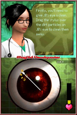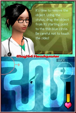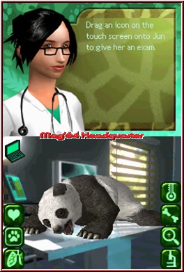 Über ein Interface erkennt Ihr Eure Einsatzwerkzeuge, ein Pulsmessgerät, eine Waage, ein Fieberthermometer, ein Atemfrequenzmessgerät, ein Vergrößerungsglas, ein Mikroskop oder ein Röntgengerät. Jedes von diesen könnt Ihr wahlweise zur Verwendung bringen, unter Abgleich der Normwerte, versteht sich, und je nachdem dann zur Behandlung schreiten. Eventuell liegt ein Bruch der Gliedmaßen vor oder es ergeben sich Ungereimtheiten mit dem Blut oder der animalischen Haut. Dann muss zum Werkzeug gegriffen werden und in kleinen Minispiel-Szenarios eingeschritten werden. Allerdings entsprechen diese „Einsätze" eher einer Farce, denn eines motivierenden Inhaltes, nicht zuletzt aufgrund der Tatsache, dass jede Behandlung gleich abläuft, wobei dann eventuell die Maßnahmen anderer Natur sind. Jede Pflege hat zur Folge, dass Euch Eure Tante eine Bewertung in Form einer Note zuteil werden lässt, die dann dafür verantwortlich ist, ob Ihr gar bestimmte Preise für das eigene Können abstaubt. Habt Ihr beispielsweise ein Säugetier hervorragend zur Genesung geführt, könnt Ihr für Eure Fachkundigkeit, ebenso aber für Eure Kompetenz mit einem Wimpel ausgezeichnet werden. Als Spielziel kann man sich dies vornehmen. Leider wirkt dies nach und nach etwas einschläfernd, weil das Minispiel-Einerlei für Demotivation sorgt und dadurch der Einsatz als Tierarzt schnell gefährdet werden könnte.