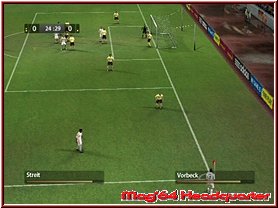 In diesem Jahr nicht dabei ist die Off the Ball Steuerung. In meinen Augen aber nichts was man vermißt. Weitere Stärke ist das Kopfball und Flankenspiel. Gerade auch bei Ecken und Freistößen. Ihr schlagt die Ecke nicht irgendwohin sondern könnt genau anweisen wohin. Danach steuert Ihr den Spieler im Strafraum der am nächsten steht und ab geht's. Dafür sind direkte Freistöße schlechter gelöst als im letzten Jahr. Das Fadenkreuz fehlt und Ihr zielt meist mehr auf gut Glück auf das Tor. Nimmt den Freistößen ein wenig den Kick. Der Ersatz für die Off the Ball Steuerung ist das Abschirmen eines Balles per Z-Taste, was euch Zeit bringt und Ihr so einen Sieg nach hause schaukeln könnt. Je nachdem wie gut Ihr spielt erscheinen oben in der Anzeige verschiedenfarbige Punkte. Diese stellen wenn man so will die Motivation und den Stil dar. Je mehr Punkte um so besser. Taktisch halten die Spieler ihre Vorgaben wunderbar ein und selbst die kuriosesten Formationen funktionieren. Wobei auch hier was neues dabei ist. Per Steuerkreuz kann man im Spiel nun 4 Taktiken einstellen, was so schneller geht als das jedesmal über Menus einzustellen. Fix mal auf Pressing oder Konter umzustellen ist leicht möglich und macht das ganze flüssiger.