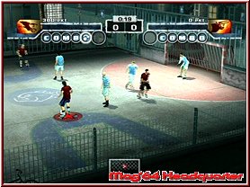 Verläßt man die Zentrale gelangt man auf den Location Screen. Hier gilt es nun 10 Städte weltweit unsicher zu machen und neben einfachen Straßenmannschaften der jeweiligen Stadt eine Meisterschaft dort zu gewinnen. Dabei ist der Screen einer Stadt ebenfalls nochmal unterteilt. Die sogenannte Kick Runde läßt euch gegen 7 einheimische Straßenteams antreten. Hier spielt man noch ohne Meisterschaftshintergrund, wohl aber schon um TC und die sogenannten Ruf Punkte, die es auch in diesem Spiel wieder gibt. Zwar werden die Punkte nicht als Zahl angegeben, dafür aber in Form einer Bezeichnung. Aus dem anfänglichen Junior sollte also etwas gemacht werden. ;-) Weiterhin wie schon erwähnt die örtliche Meisterschaft für die man aber zum einen TC als Startgeld einsetzen muß und das Team als ganzes einen gewissen Durchschnittswert besitzen muß. Denn nicht nur Ihr als eigener Charakter habt ein Rating von 1-99, sondern auch alle anderen Spieler. Der dritte Punkt ist ebenso interessant wie gelungen. Zwar sind im Spiel nur 200 Lizenzspieler aus 16 Ligen enthalten, hier aber aufgrund des Gameplay's auch völlig ausreichend. Der dritte Punkt Kader Upgraden dient dazu örtliche Talente wie einen Michael Ballack, Ronaldo oder Nesta zu erspielen, in dem man das Team um diesen Spieler herum schlägt und danach in sein Team holen kann und einen alten rausschmeißt. So schaukelt sich das ganze in Sachen Inhalten wunderbar auf. Denn 10 verschiedene Locations wollen erstmal geknackt werden. Dabei ist in der einfachen Kick Runde als auch in den Kader Upgrade Spielen das Spielziel immer gleich. Wer zuerst 5 Tore erzielt hat der hat gewonnen. Erst in den Meisterschaften werden dann auch Halbzeiten gespielt.
