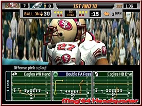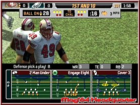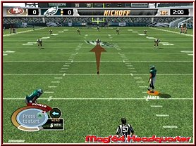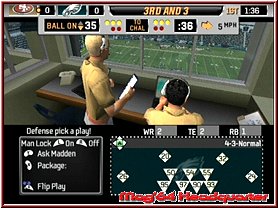Spielt Ihr nur unterirdisch müßt Ihr euch nicht wundern wenn euer Running Back öfters als gewohnt einen Fumble produziert. Doch kommen wir so langsam mal zum wichtigsten, dem Gameplay selber. Steht ein Spiel an werden die Teams in den üblichen Animationen vorgestellt und alles beginnt mit dem Münzwurf und der Entscheidung wer zuerst seine Angriffsreihe auf das Feld führen darf. Alles findet in den originalen Stadien statt. Dazu habt Ihr keine festen Wetterbedingungen und werdet bei allem was Ihr tut vom von den allseits bekannten Kommentatoren begleitet. Alles beginnt mit dem Kick Off und vor dem Spieler liegen 4 Quarter a 15 Minuten, wobei diese je nach Settings auch nur 1 Minute lang sein können. Ziel ist es mehr Punkte zu machen als der Gegner und siegreich vom Platz zu gehen. Je nachdem ob Ihr im Angriff oder der Defense agiert stehen euch reichlich Eingriffsvarianten zur Verfügung. Zunächst wählt man die Art der Aufstellung und danach den jeweiligen Spielzug. Immer etwas das "Betriebsfremde" anfangs abschreckt wenn da plötzlich Zeichnungen mit Positionen, Pfeilen und Linien auftauchen. Hier entscheidet Ihr euch dann auch anhand der Gegneraufstellung was Ihr machen wollt. Einfach gesagt für ein Lauf oder Pass Spiel, oder eben in der Defense um auf den Gegner reagieren zu können. Habt Ihr also eine Laufverteidigung auf dem Platz und der Gegner macht ein Pass Spiel seid Ihr also schonmal im Nachteil. Natürlich ist dies der große Reiz des Spiels um selber die 10Yards zu schaffen zu einem First Down und mehr oder den Gegner daran zu hindern.