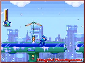 Mit "R" und "L" navigiert Ihr durch Eure anwählbaren Angriffsarten, auf dem "B"-Knopf springt Ihr in die Höhe. Enge Passagen nimmt Mega Man gekonnt im Slide ("X"-Taste), das Autofeuer liegt auf dem "Y"-Button. Da Mega Man eine Energieleiste besitzt, habt Ihr immer perfekten Überblick über dessen Zustand, die zweite Leiste gibt über Eure Bonuswaffen bescheid und ob diese noch einsatzfähig sind. Die Standardwaffe kann von Euch dauerhaft unter Einsatz genommen werden, effektiver sind hingegen die durchschlagenderen Extrawaffen, welche Ihr im Laufe des Spieles erhaltet. Kleine Kapseln, welche Eure Gegenspieler fallen lassen, werten Eure Energieleiste auf, Container bescheren den Waffen Zusatzpower, so dass Ihr frohgemut weiterballern könnt. Des Weiteren hinterlassen einige Gegner Extraleben, die unser blaubemützter Heroe gerne an sich nimmt. Weitere Items oder dergleichen werdet Ihr innerhalb der Abenteuer nicht finden, die Titel haben einfach schon einige Jahre auf dem Buckel; die Entwickler beließen alles beim Alten, was dem Spielerlebnis aber mit Sicherheit nicht geschadet hat. Verfechter grafischer Prachtwerke werden unter Umständen schreiend davon laufen, Nostalgiker aus dem Schwärmen gar nicht mehr heraus kommen. Wie schön, dass Charaktere so unterschiedlich sind ;-) .