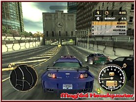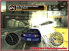 Denn nicht nur eure Rennsiege zählen hier, sondern eben auch wie sehr Ihr euch bei den örtlichen Behörden beliebt gemacht habt. ;-) Dadurch das aber nun über die Menus Spielziele direkt anwählbar sind, spielt man weit weniger über das Freie Fahren wie in Underground 2. Für das Kennenlernen der Gegend und den Besuch in Shops ist es aber nötig ein bißchen herum zu Cruisen. Dazu kommt ein immer gleiches Ritual bei jedem Gegner aus der Blacklist. Um ihn überhaupt erstmal herausfordern zu können muß der Spieler einige Vorgaben erfüllen. In Most Wanted sind dies 3 Dinge. Zum einen gilt es eine bestimmte Anzahl Rennen zu gewinnen. Ebenfalls festgelegt ist eine erforderliche Anzahl von sogenannten Meilensteinen und schlußendlich auch noch ein Kopfgeld das man erreicht haben muß. Erst wenn man alle 3 Dinge, was durch Häkchen angezeigt wird, geschafft hat darf man den eigentlichen Blacklist Fahrer herausfordern. Eines kann man so aber schnell klarstellen. Die Spielzeit ist erneut sehr hoch. Zwar denkt man anfangs noch, alles wäre ein kleiner Selbstläufer, spätestens ab der Hälfte des Spiels sieht man das teilweise anders. Kleine Hilfe im fortschreitenden Spiel ist die Tatsache das man nicht komplett alles pro Blacklist Fahrer lösen muß. Muß man z.b. 7 Rennen gewinnen und 10 sind möglich, kann man 3 also auch weglassen. Nur wer wirklich alles fährt, gewinnt und erreicht sieht eine 100% Anzeige im Karriere Menu. Sieht nach Underground 2 auch hier nach einem Testupdate aus. ;-) Bei jedem Blacklist Fahrer habt Ihr neue Rennen und Meilensteine. Dabei ist nun z.b. ein Rennen nicht einfach nur ein Rennen im Herkömmlichen Sinne. Wählt man diese Rubrik an findet man neben Rundenrennen auch die bekannte Sprint und Eliminierungsvariante und bekommt mit der Mautstelle und dem Radarrennen neue Varianten an die Hand. Bei den Meilensteinen handelt es sich zudem um die vielleicht radikalste Neuerung und auch den Spaßbringer an sich. Denn hier kommt die Polizei zum Zuge, die dem ganzen einen neuen Kick geben sollte. Doch kümmern wir uns um eines nach dem anderen und beginnen zunächst mit den normalen Freien Fahren.