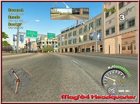 Glücklicherweise besitzt auch SRS eine Kartenfunktion, die man im Straßen Modus per Z-Taste aufrufen kann. Hier werden euch nun alle wichtigen Orte als farbige Punkte angezeigt, wobei jeder für Orte und die Art der Events steht. Der Vorteil der Karte ist nun das man jeden einzelnen Punkt per Hand anwählen kann und sofort dort startet, ohne das man langwierig hinfahren muß. Das ganze ist natürlich zeitsparender, hat aber den Nachteil das man den möglichen Nitro nie aufgeladen bekommt. Denn das geht nur wenn man ab und zu doch mal im normalen Straßen Modus hin und herdüst und ein paar der möglichen kleinen Stunts vollführt. Die Events die man in den 3 Locations vorfindet beinhalten Rennen gegen 3 Gegner in kleinen Meisterschaften, die sogenannten Crew Events. Dazu kommen Respekt Rennen in denen man den hübschen Mädels beweisen muß wer der Chef ist und enden in den Straßen Rennen, in denen um Geld und Girlies von einem Punkt A nach Punkt B gegen einen Gegner gefahren wird. Die wichtigsten Events sind aber die Crew Rennen. Nur hier erzielt man den Hauptteil der Respektpunkte und des erspielten Geldes. Je in 3 Rennen unterteil warten im Spiel 72 Rennen darauf in diesen Meisterschaften gespielt zu werden. Wählt man nun also den ersten von mehreren möglichen Crew Event an wird einem angezeigt ob man dafür zugelassen ist. Zum einen müßt Ihr in den meisten Fällen Startgeld vorweisen und eine bestimmte Respektpunktzahl haben um zugelassen zu werden. Bevor man eine Meisterschaft startet kann man hier aber eines der positiven Feature im Spiel finden - das Schadensmodell.