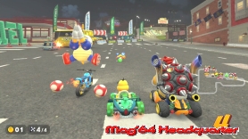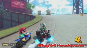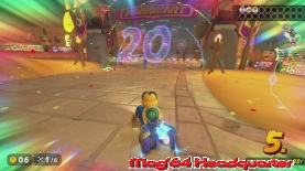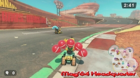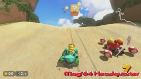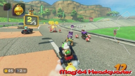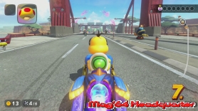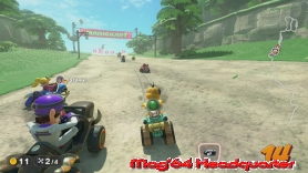 Es wirkt einfach vieles imposanter und größer, auch wenn die Strecken an sich ja nicht länger sind als früher. Das hat man echt sehr gut hinbekommen. Man erlebt das auch in FHD unterwegs, auch wenn man mit der Zeit merkt, es ist halt kein OLED-Display. Dennoch ein Erlebnis, wäre da nicht die kurze Akkulaufzeit von 2-3 Stunden, wenn man mal unterwegs zocken will. Das Gleiche gilt auch für den Sound, auch wenn es hier noch die wenigsten wirklichen Neuerungen gibt. Nimmt man mal die oft sehr Prairie-lastigen Stücke raus, erkennt man vieles wieder und euch dudeln die bekannten Nintendo Melodien um die Ohren. Klanglich alles ein wenig satter als früher, bekommt ihr hier gewohnte Kost geboten, die einfach dazu gehört. Auch in Sachen Effekten nicht anders. Reichlich an Bord und bei Online Rennen gerne mal so zahlreich, dass man die Hintergrundmusik kaum wahrnimmt. ;-)