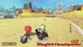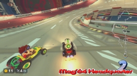 Wer es hier echt etwas ruhiger angehen will, nutzt die Varianten mit Freunden, oder geht gleich völlig auf den Lokalen Modus. Klar das man hier genug Leute beisammenhaben sollte, auch wenn man die fehlenden Plätze "auffüllen" kann. Aber gerade für Familienevents nicht zu unterschätzen. Außerdem kann man auch 2 Spieler pro Konsole versammeln, die dann zumindest die Anzahl der Hardware reduzieren. Alles in allem aber viel viel Action Online. Brawl Charakter und Action Nonstop ist vorprogrammiert. Wer darauf steht fährt einfache Rennen bis zum Abwinken. Wer es etwas strategischer will nimmt die K.-o.-Tour Rennen Online, die wie im Einzelspieler ein echtes Highlight darstellen. Unterhaltung bieten alle Modi und das technisch sauber und mit einem gelungenen Ratingsystem.