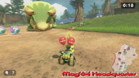 Alle Thematiken dabei, die von Zelda Umgebungen, Bowsers Castle oder Sunshine reichen, erhöhen extrem den Bezug zu Nintendo Themen. Das fand ich schon Klasse und jede Strecke hat so ihre eigene Geschichte und eigenen Style. Und anders als früher fällt für mich keine so richtig ab. Selbst der neue Regenbogen Boulevard ist eine Bombe. Gar nicht mal mit unmöglichen Kurven, sondern rein mit der Weite der Strecken und damit eben dem Feeling beim Fahren. Und wie viele andere eben ohne Runden an sich, sondern mit einem Start und Endpunkt durch viele imposante Abschnitte. Wem jetzt immer die Strecken in einem Grand Prix zu kurz waren, der wird sich über den K.-o.-Modus immens freuen. Nicht nur für mich das Highlight des Spiels. Wählt man diesen Punkt im Einzelspieler an wartet zunächst die Fahrer und Fahrzeugwahl, ehe man auf dem Streckenbildschirm landet. Auch hier warten satte 8 Rallyes auf euch, die aber in sich einfach gesagt 6 Rennen am Stück beinhalten. Ist das schon mehr als im Grand Prix Modus, so ist der größte Unterschied, dass man zum einen auch andere Streckenteile zu fahren bekommt und diese vor allem am Stück fährt. Sprich als wenn man 6 Strecken hintereinanderfährt. Dabei ist das Ziel möglichst zu gewinnen, oder zumindest einen Pokal für Platz 1, 2 oder 3 erfährt. Damit es nie langweilig wird, gilt hier aber eine Ausscheidungsregel. Es fahren auch hier 24 Charakter, die aber immer im Übergang von einer Strecke zur anderen dezimiert werden. Die letzten 4 fallen immer raus. So habt ihr immer ein Ziel vor Augen.